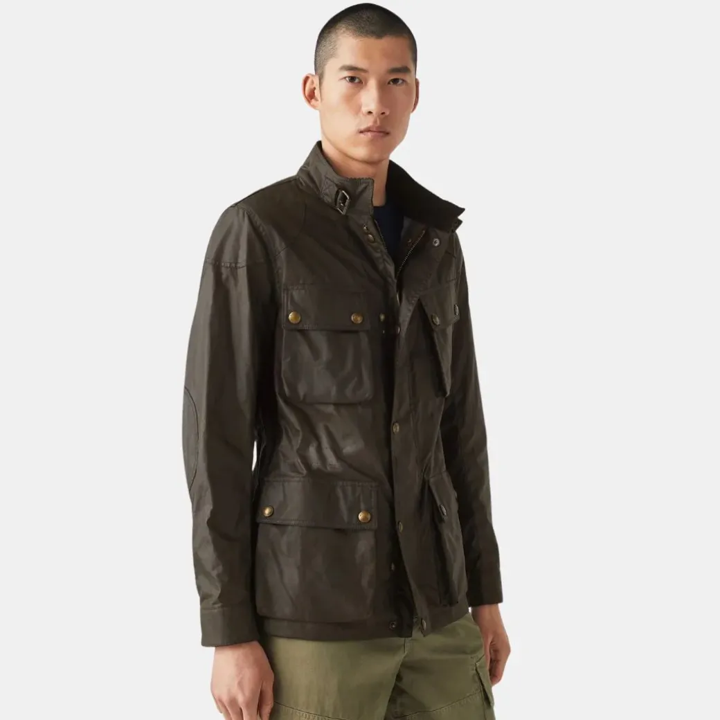 Hecha en algodón encerado de 170 g en color verde oliva, la chaqueta Fieldmaster cuenta con el característico bolsillo inclinado para mapas y un cordón interno en la cintura para que el ajuste sea perfecto. Vuelve a encerarla periódicamente para que la prenda se conserve repelente al agua y resistente al viento.