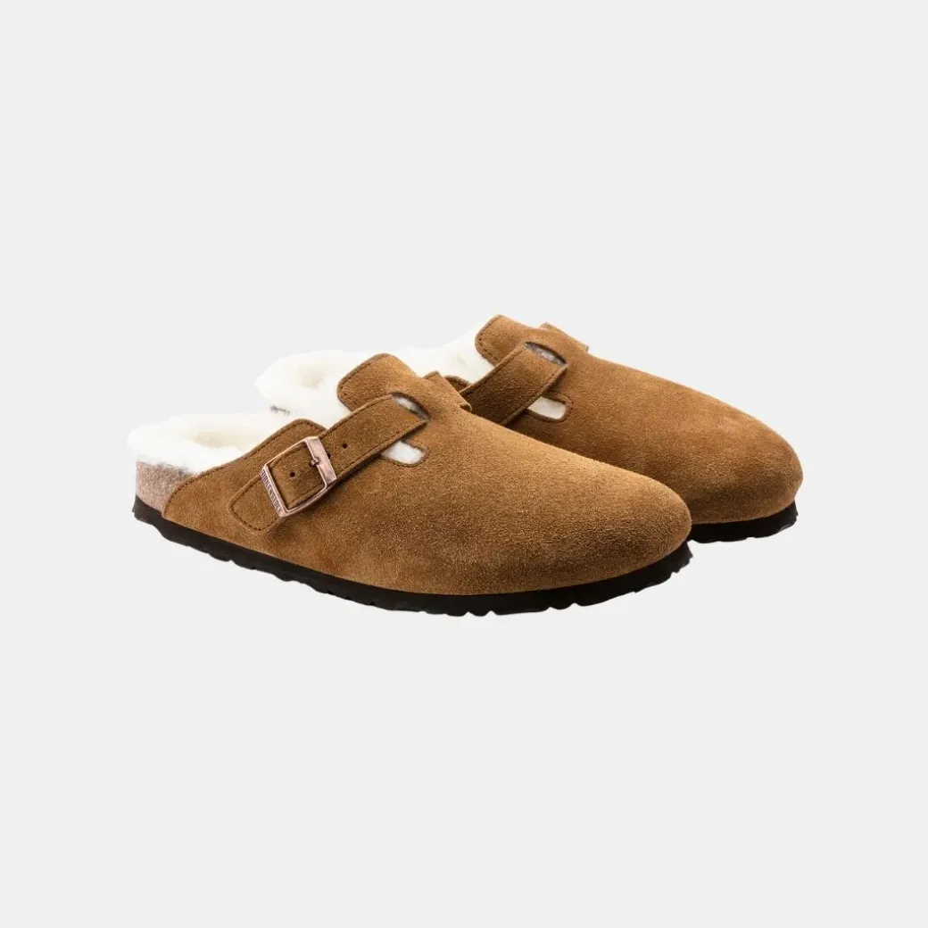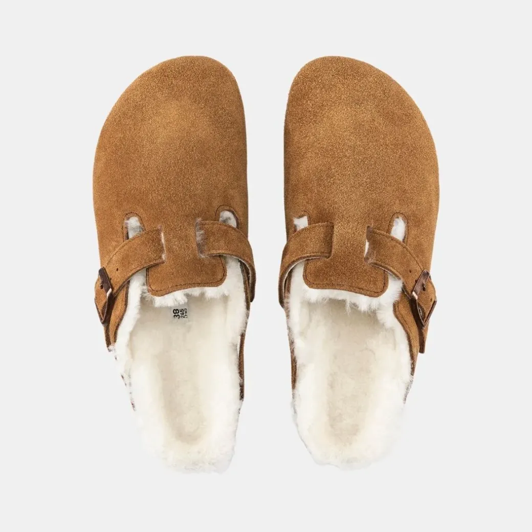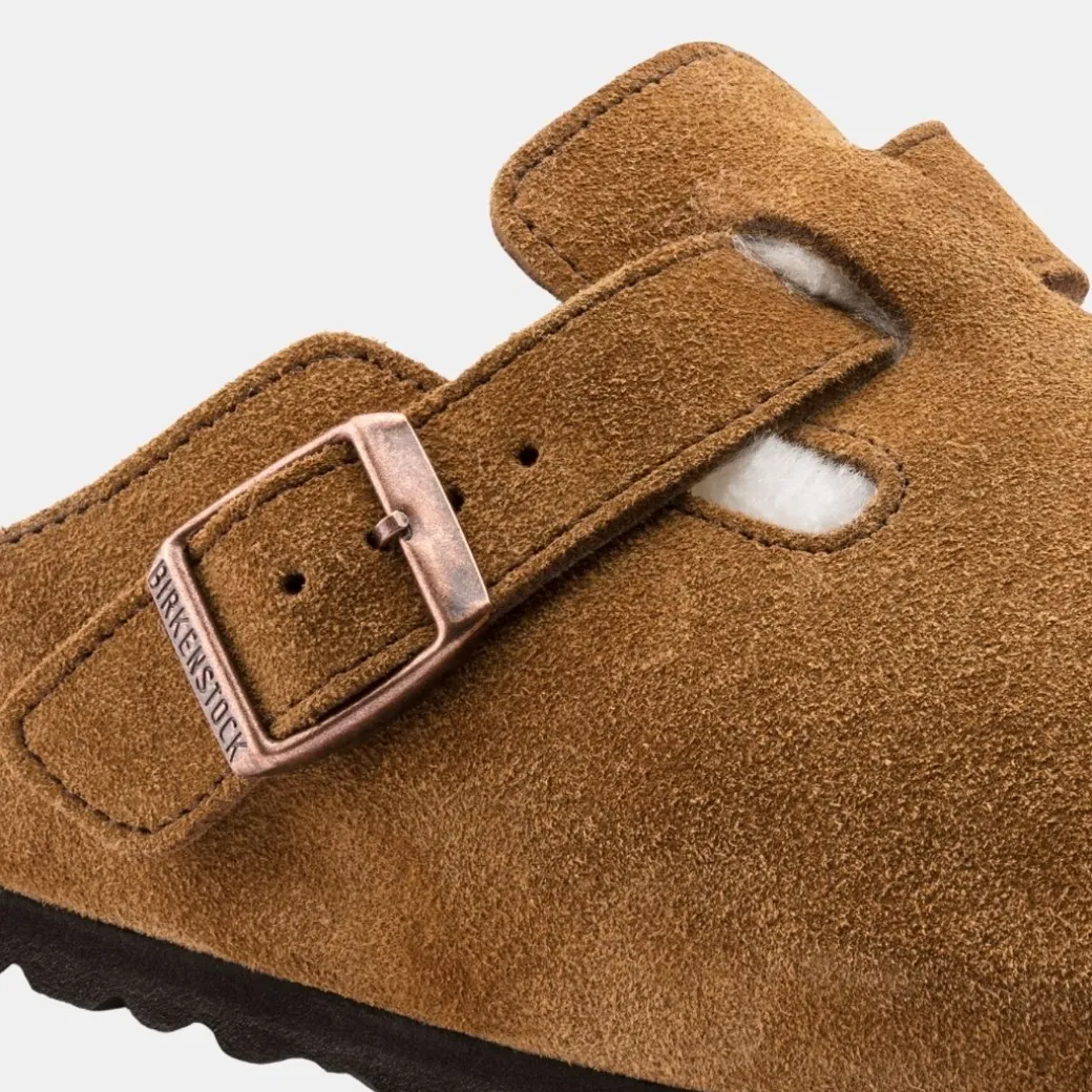 Todo un clásico entre los modelos BIRKENSTOCK como es el zueco Boston aparece aquí en una variante especialmente hogareña, confeccionada con ante genuino de alta calidad. La cubierta superior de la suela —de lana de borrego natural— y las correas revestidas por abajo del mismo modo, aportan un toque de estilo al tiempo que calientan el pie. El calzado perfecto para pasar agradables tardes de invierno frente a la chimenea.
