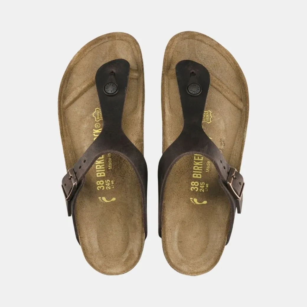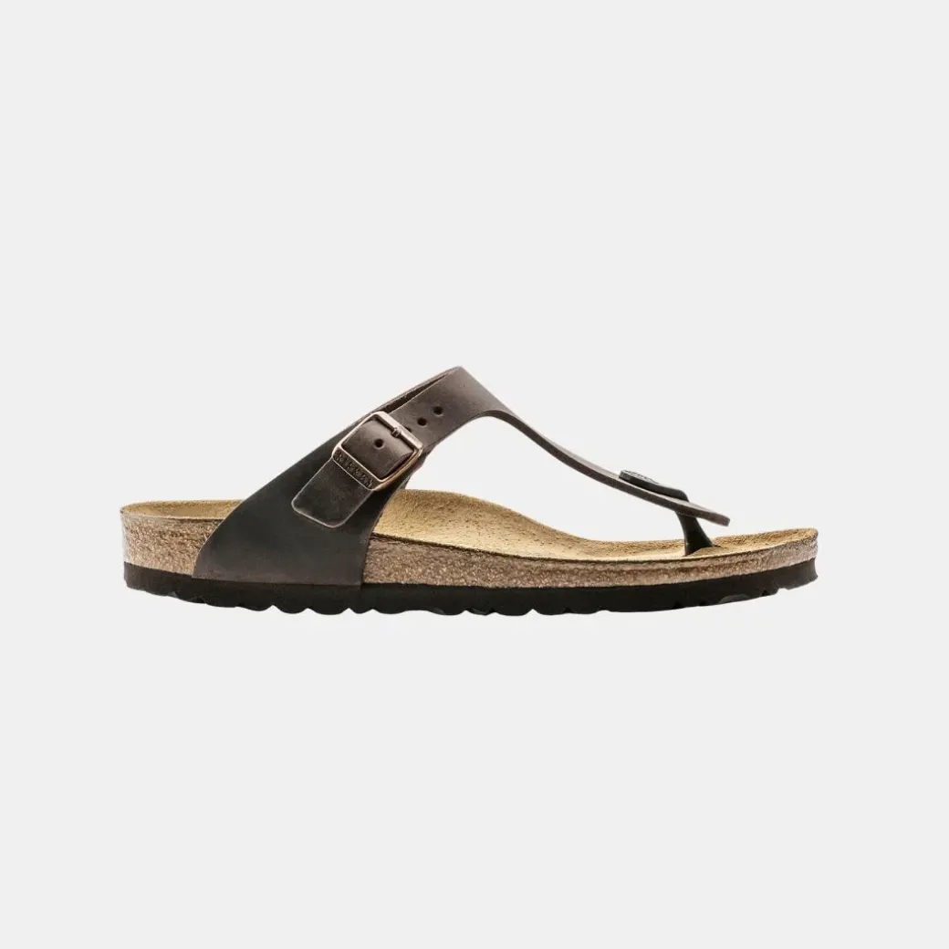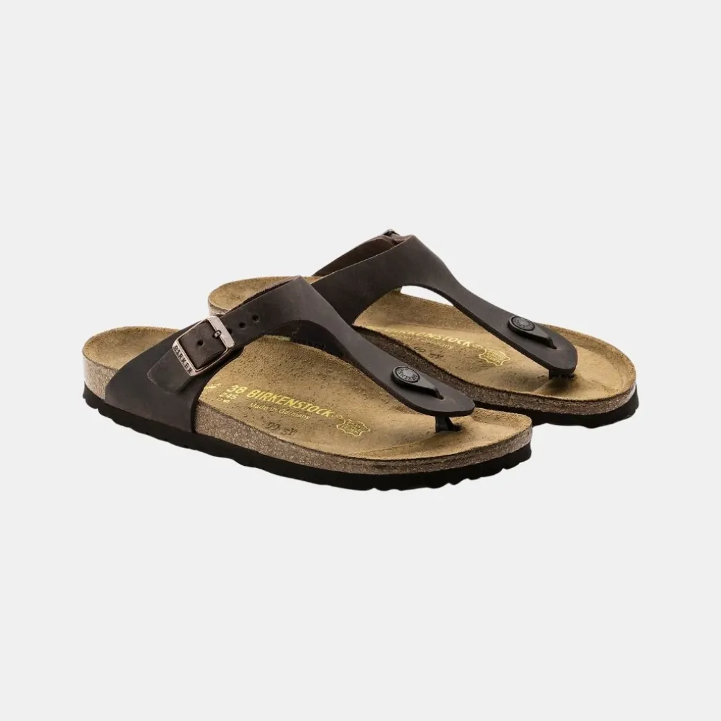 El modelo Gizeh de BIRKENSTOCK es un auténtico clásico y un todoterreno con mucha clase. Nuestra elegante sandalia de puente aúna una sujeción óptima con una estética minimalista y actual. El material superior es de piel nubuc muy gruesa y engrasada, confeccionada sin costuras en los bordes.