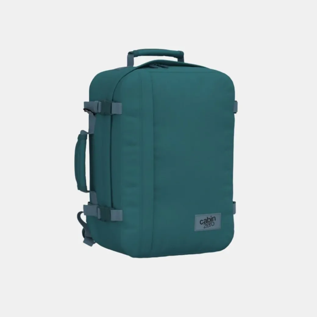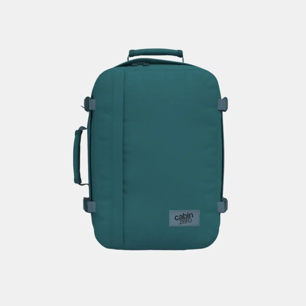 El Classic CABINZERO en Aruba Blue es el bolso de viaje original y sin complicaciones. Para aviones o trenes, debajo del asiento o en el lomo de un camello. Esto es una mochila clásica que haya viajado tanto como usted, que esté hecho para vivir aventuras, que sea parte del viaje, no una ocurrencia tardía.