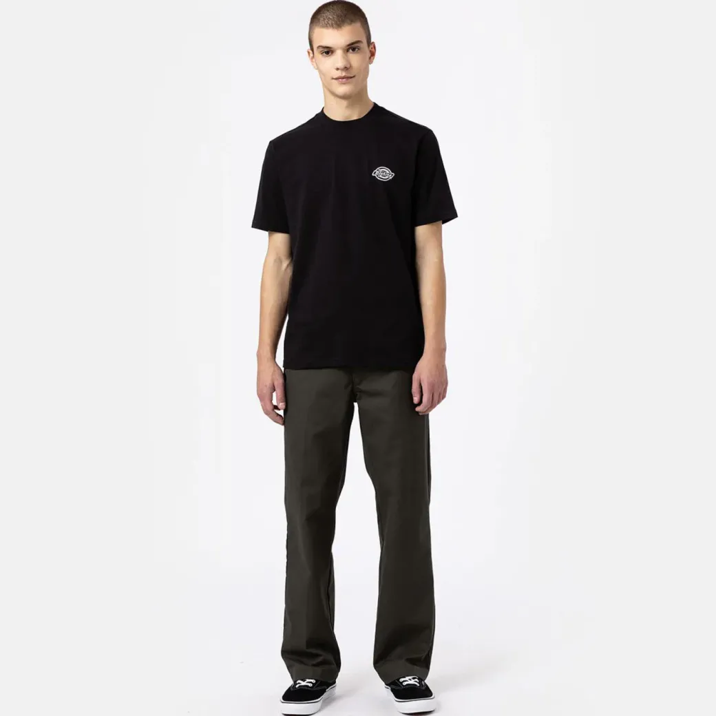 - Logotipo icónico de Dickies en tamaño pequeño en el frente y serigrafía grande en la parte posterior.