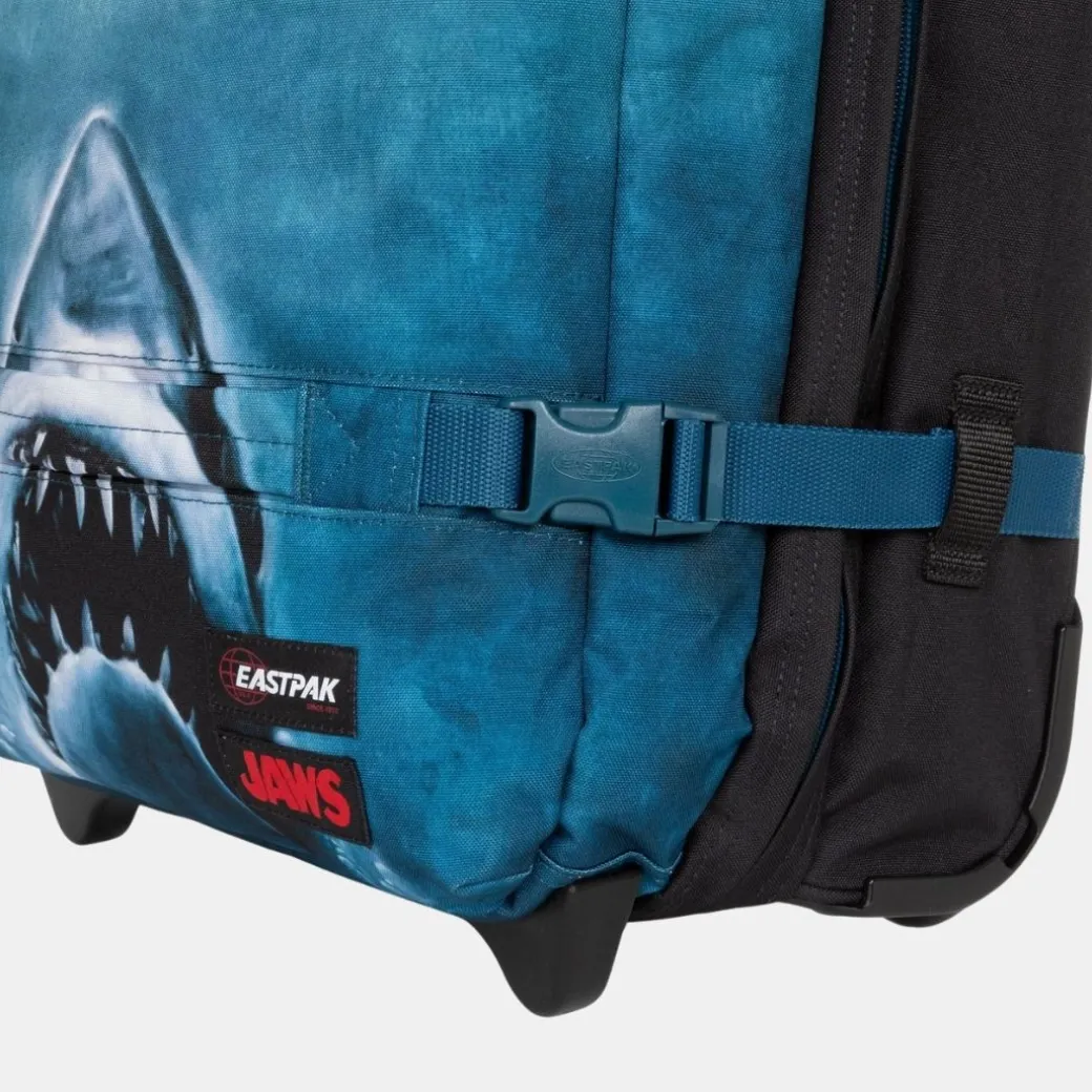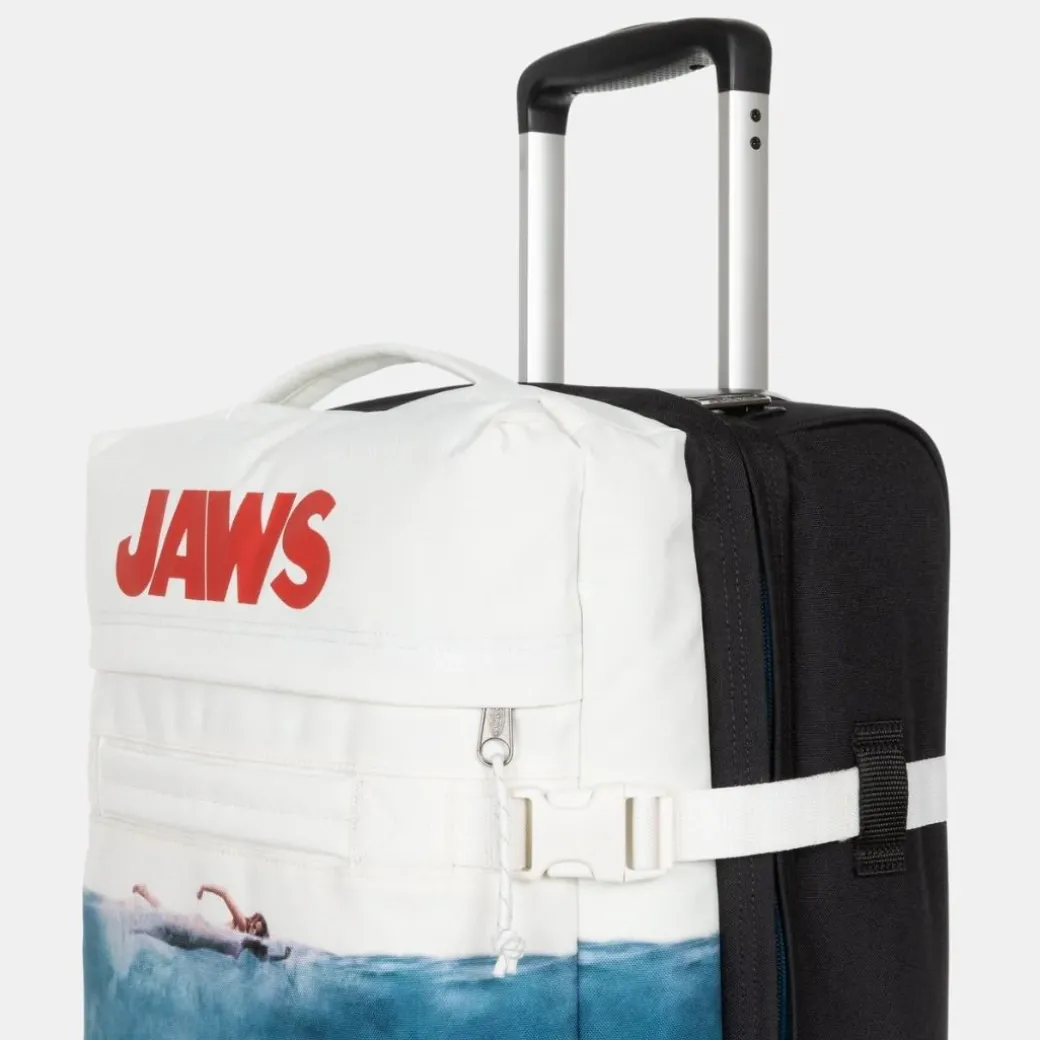 Maleta de mano, fruto de la colaboración con JAWS. Esta maleta de mano compacta luce un nostálgico estampado del cartel de la película de 1975. Llena los dos compartimentos y guarda de forma segura tus pertenencias con el candado integrado. Esta resistente maleta, apta como equipaje de mano, cuenta con tubos de aluminio, tacos antideslizantes y detalles en relieve en el mango.