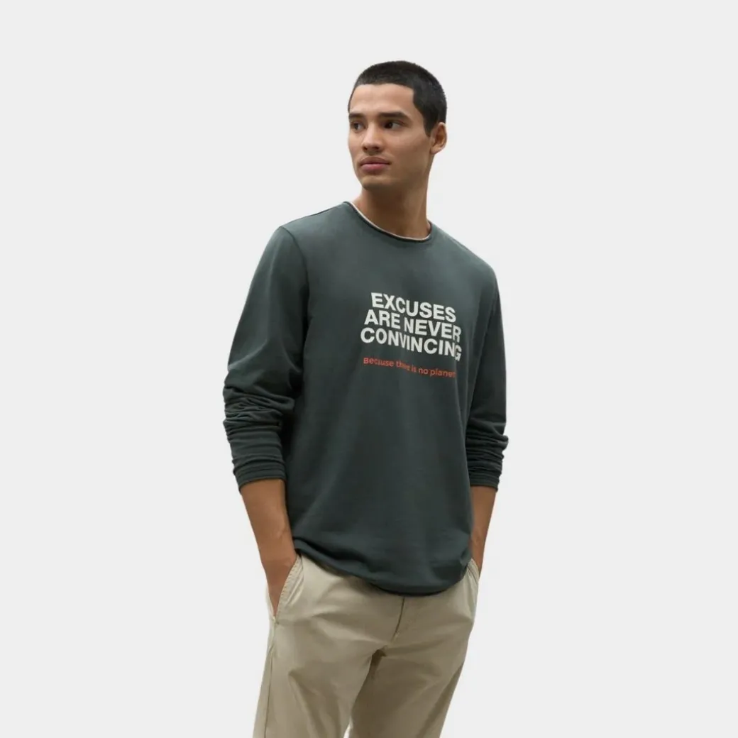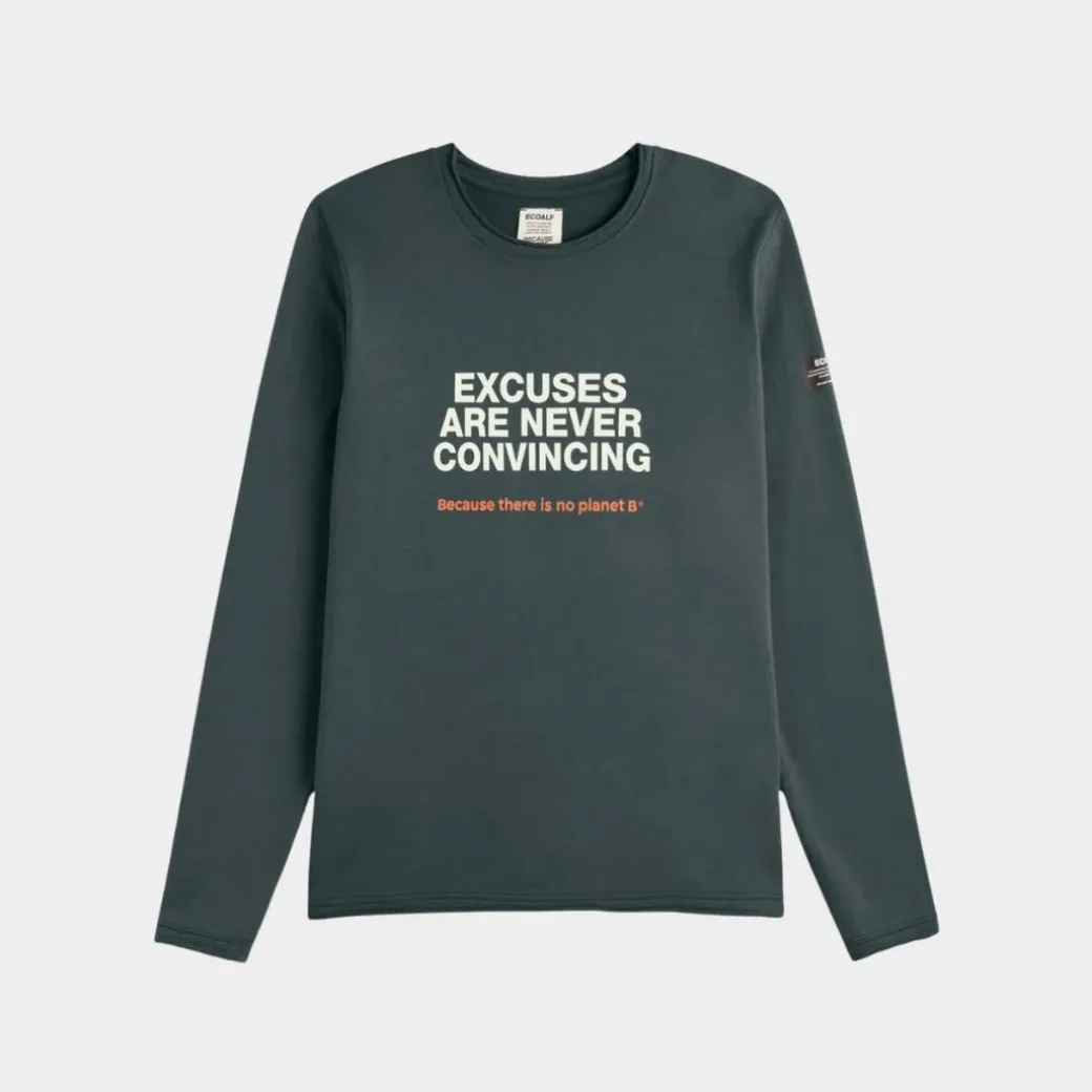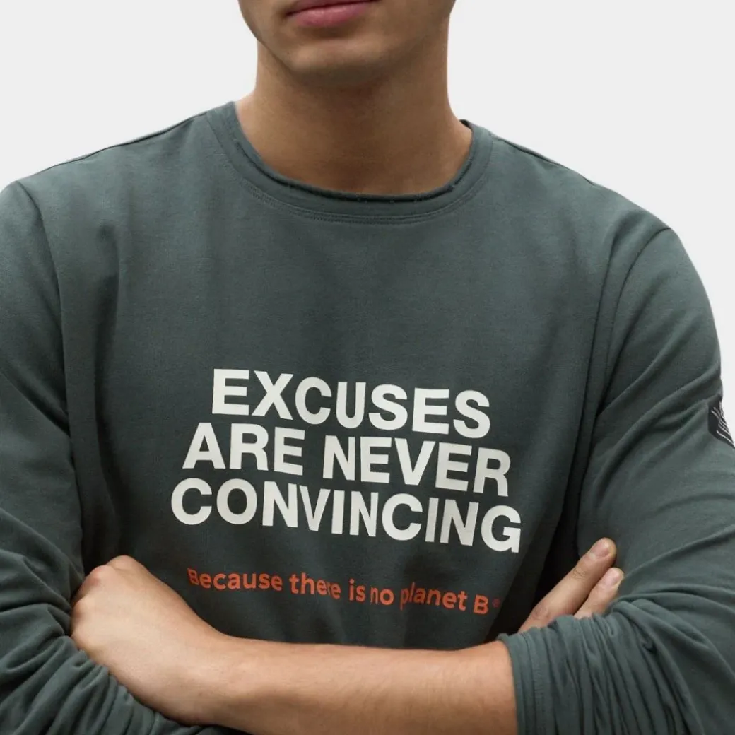 La sudadera Linton está hecha de 50% Algodón reciclado y 50% Algodón orgánico. El Algodón reciclado proviene tanto de ropa usada como de residuos textiles en el proceso productivo y evita la generación adicional de residuos ahorrando una gran cantidad de recursos. Lleva en la parte delantera el print: «Excuses are never convincing» para que lo compartas allá donde vayas.