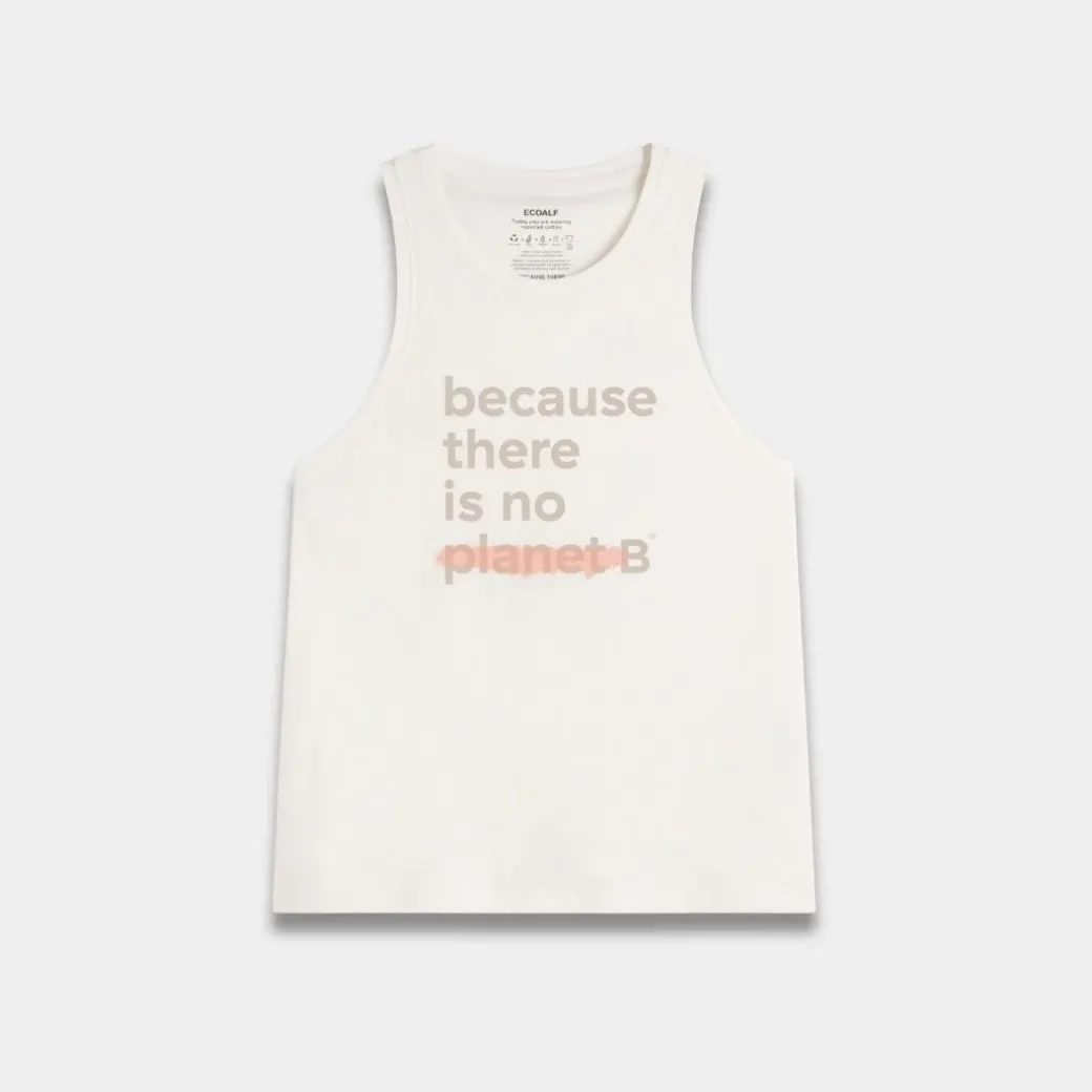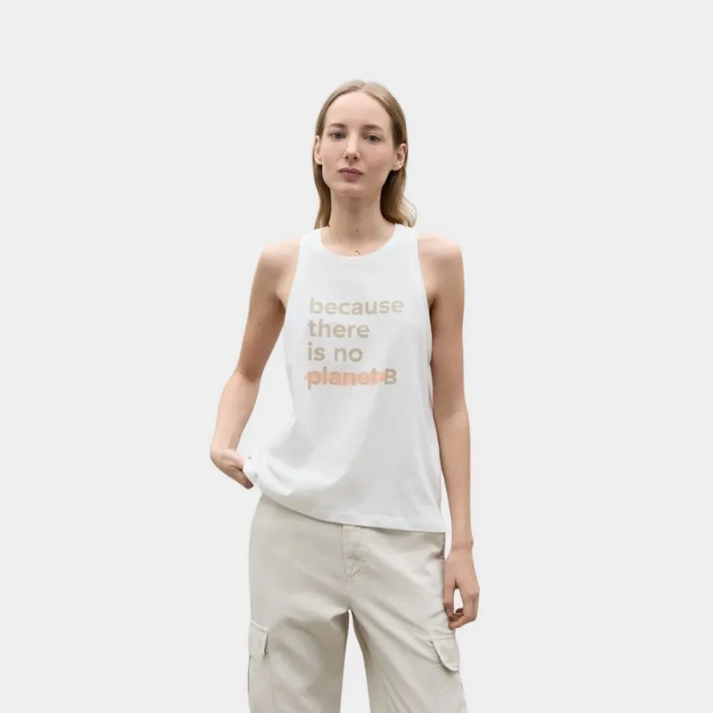 La camiseta Underlined está hecha de 50% Algodón orgánico cultivado de manera natural, por lo que no se han empleado pesticidas en el proceso de producción, y 50% Algodón reciclado que proviene de ropa usada. Es una camiseta sin mangas en la que encontrarás nuestro claim en el pecho: «Because there is no planet B».