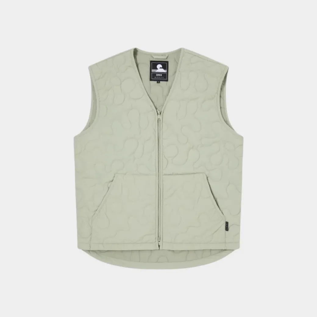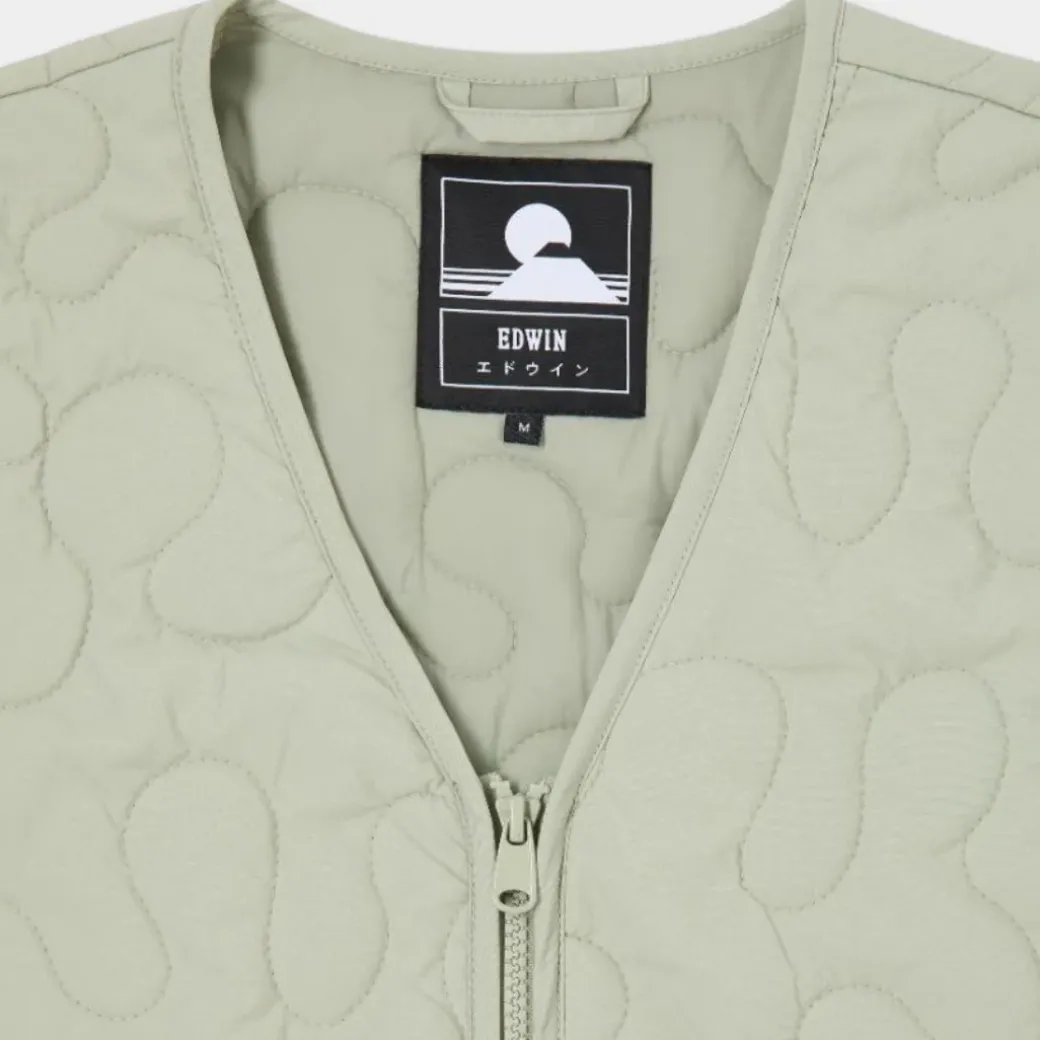 El chaleco EDWIN Camper es una chaqueta sin mangas ligeramente acolchada con dos bolsillos delanteros y una etiqueta EDWIN bordada. El chaleco está hecho de 96% nailon y 4% elastano.