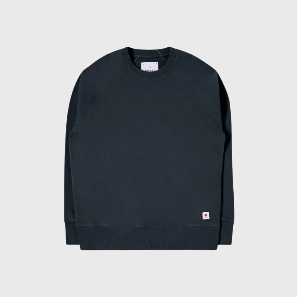 La sudadera con cuello redondo y mangas raglán EDWIN es una sudadera con capucha de corte cuadrado corto y de alta calidad con mangas raglán, puños de canalé elásticos y banda inferior confeccionada en 100 % algodón.