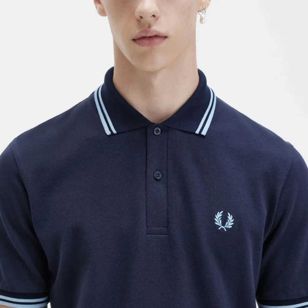 La camisa original de Fred Perry con ribete doble . Confeccionada por manos expertas en Leicester, Inglaterra, con el corte estilizado característico de Fred. Pieza del uniforme de la subcultura británica durante 70 años.
