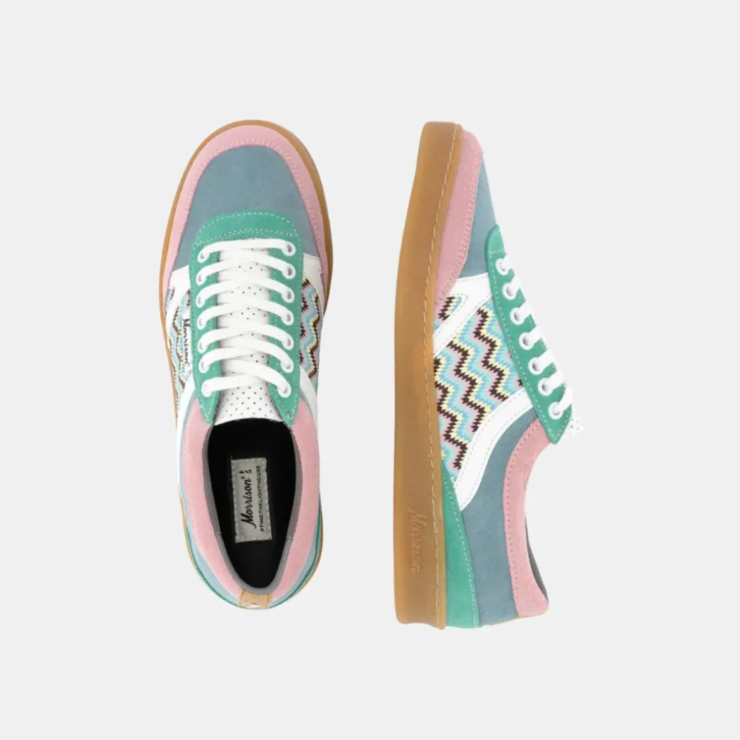 Si tú también soñabas con ser “el chuleta de un barrio llamado Bel-Air”, estas zapatillas son para ti. Inspiradas en los looks más llamativos de “El Príncipe de Bel-Air”, estas nineties son perfectas para los amantes de los colores y prints noventeros. Fabricadas en serraje multicolor, con cordones de algodón blanco y suela color tocino.