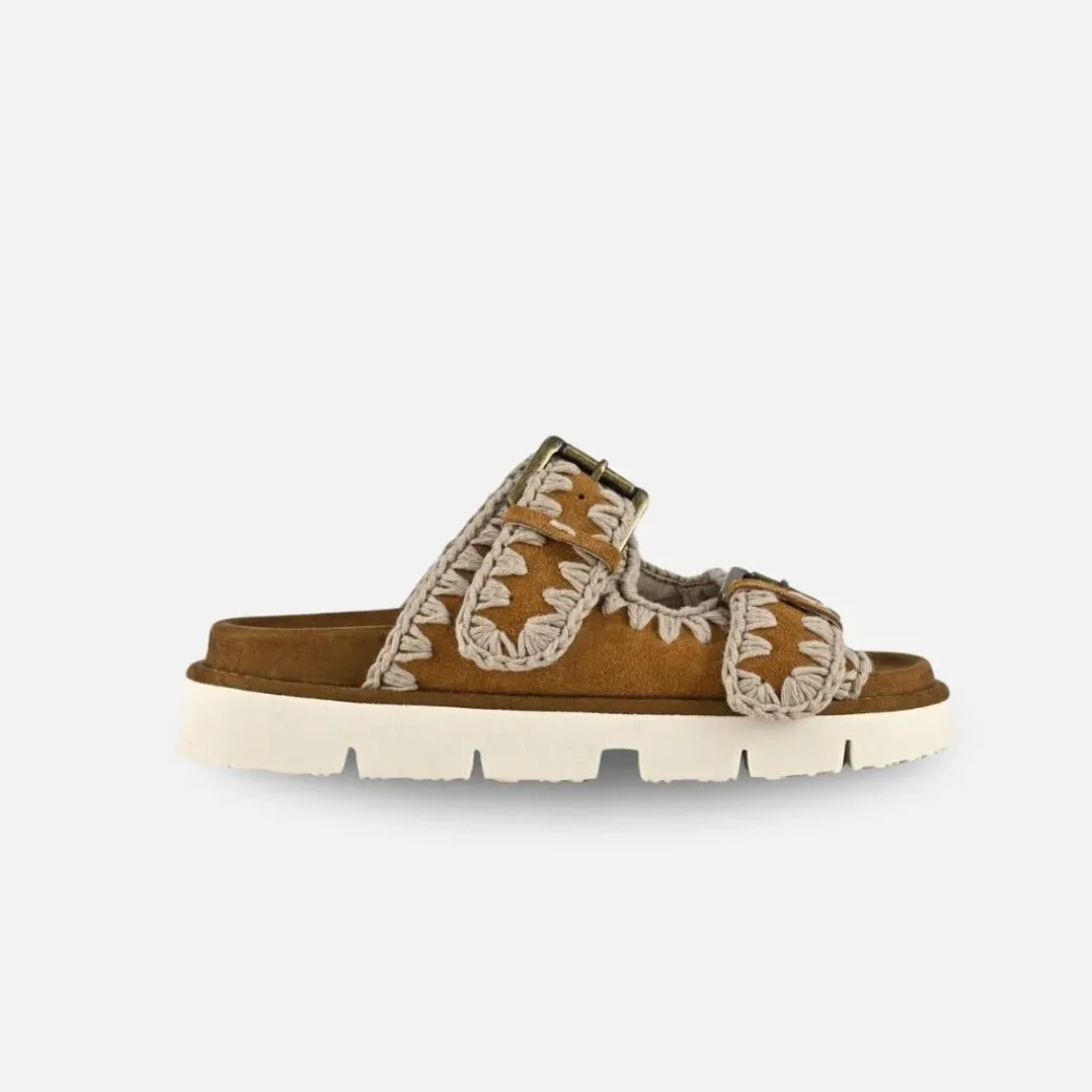 Estas sandalias bio de Mou cuentan con dos hebillas modernas y ofrecen el look perfecto para un verano relajado y elegante. Completa con una correa doble delantera, la característica puntada de ganchillo de Mou, una ligera suela exterior de EVA y plantilla acolchada de ante para mayor comodidad.