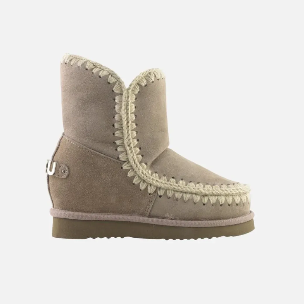 Una pieza esencial en el vestuario invernal de mou, las eskimo de cuña baja con un gran logo metálico representan lo mejor del icono mou con un tacón oculto de 5 cm y una forma más estilizada. Increíblemente cómodas y favorecedoras, este modelo está elaborado con suave piel genuina de oveja, con costuras de lana tejidas a mano, un soporte de apoyo para el talón y una resistente suela de EVA. Altura 23 cm. Regular fit.