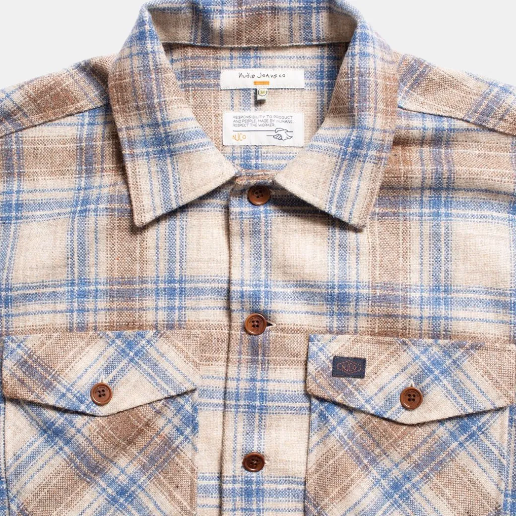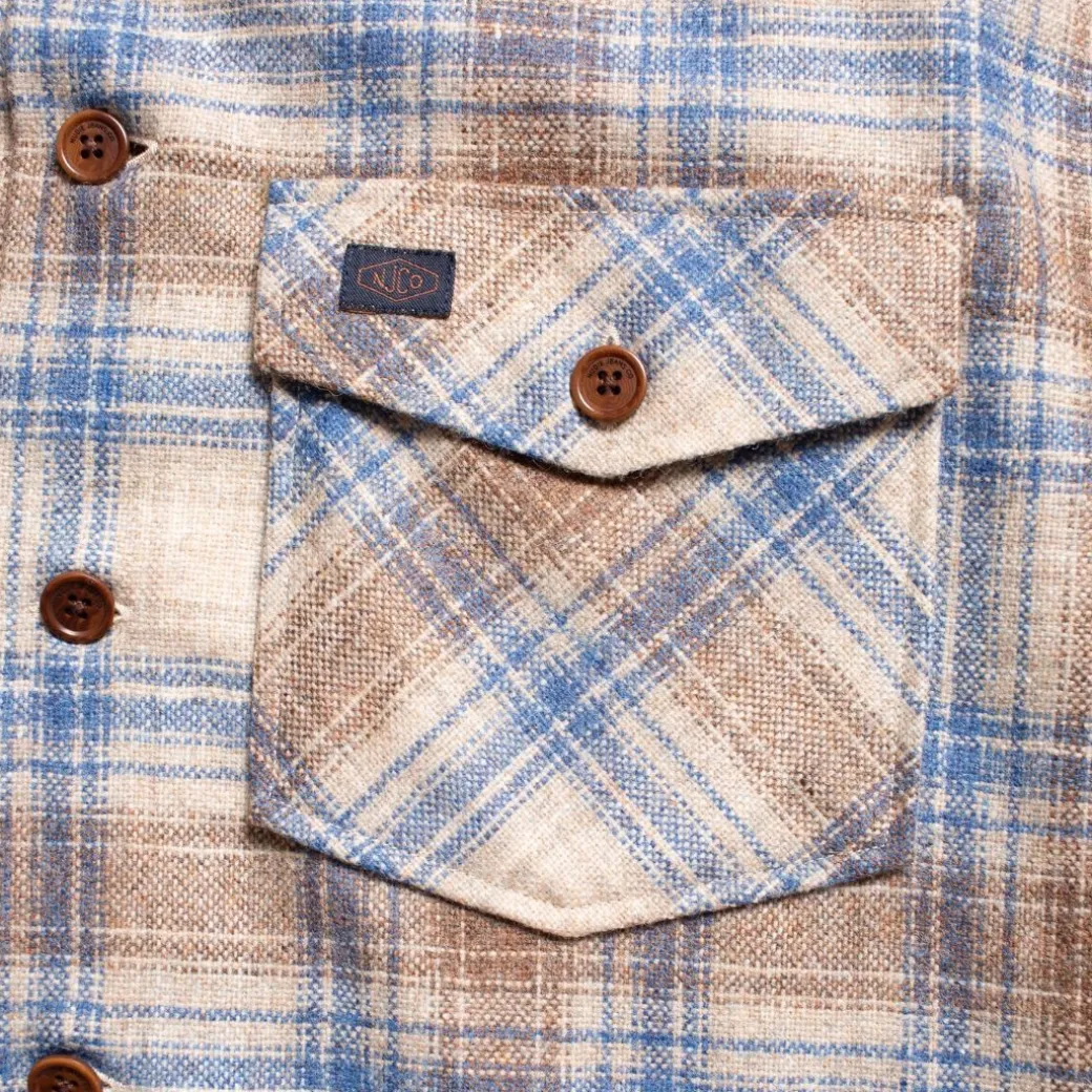 Camisa confeccionada en cuadros con tonos cálidos y terrosos iluminados por un azul claro. El tejido mezcla lana reciclada y poliamida, lo que nos brinda una calidad resistente y para actividades al aire libre con una textura rugosa y una sensación de sequedad en las manos. Las mangas están forradas con forro de poliéster reciclado. Cuando compras esta camiseta, puedes estar seguro de que hemos pagado nuestra parte del salario digno por ella.