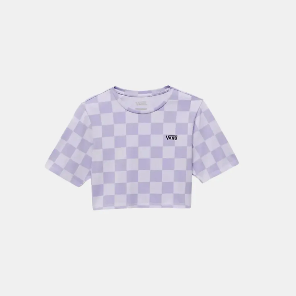 La camiseta Check Crew Crop es una camiseta de cuello redondo y manga corta confeccionada con un algodón más pesado que presenta un estampado de cuadros por todas partes y el logotipo de Vans bordado.