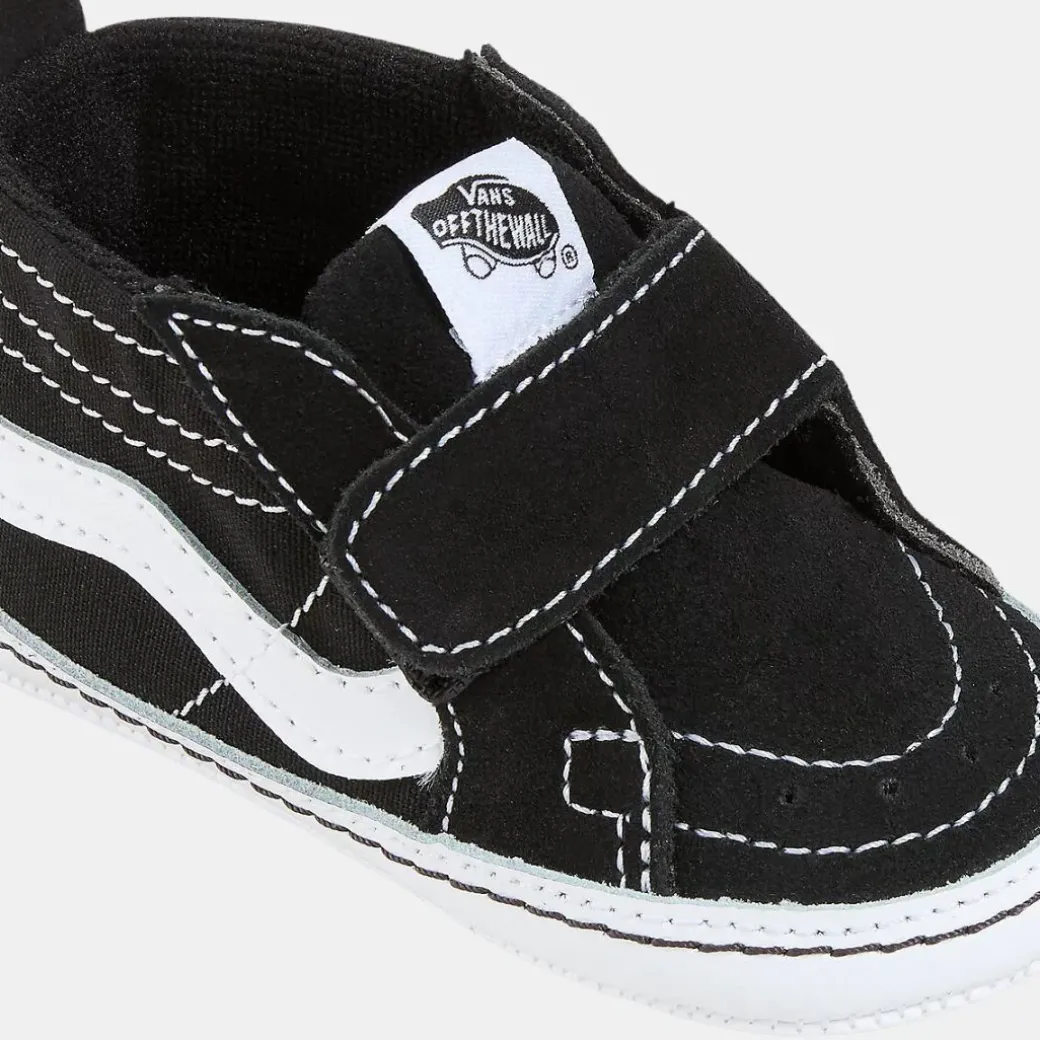 Las Sk8-Hi Crib, renovadas para ofrecer un ajuste perfecto con el mismo estilo que las Sk8-Hi originales, cuentan con unas resistentes palas de lona y ante, un cierre de velcro y una trabilla en el talón para ponerlas y quitarlas con facilidad. Las suelas tienen un diseño nuevo que imita la inconfundible suela reticular waffle de Vans y el panel en el talón completa este diseño clásico.