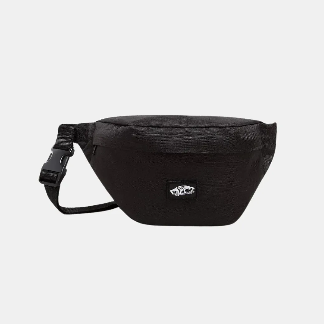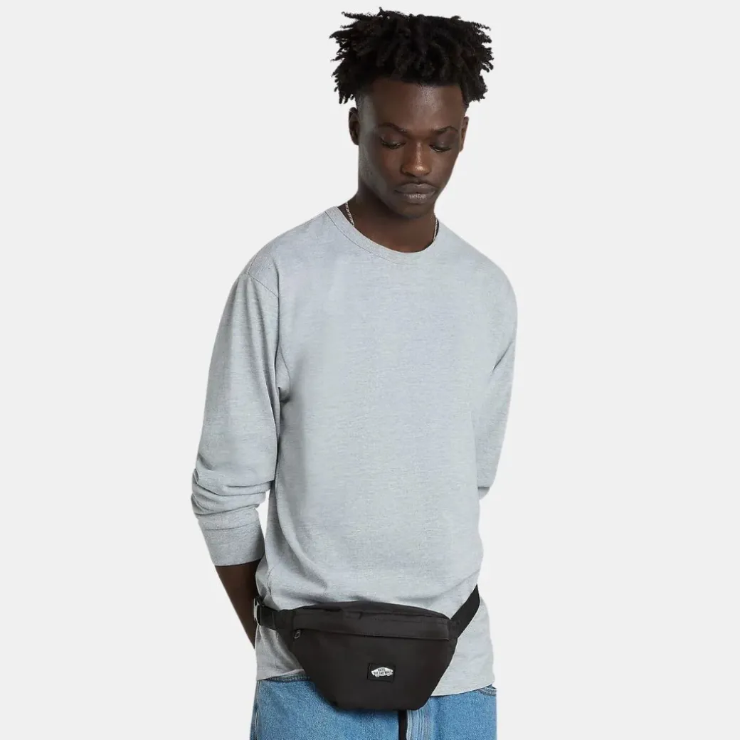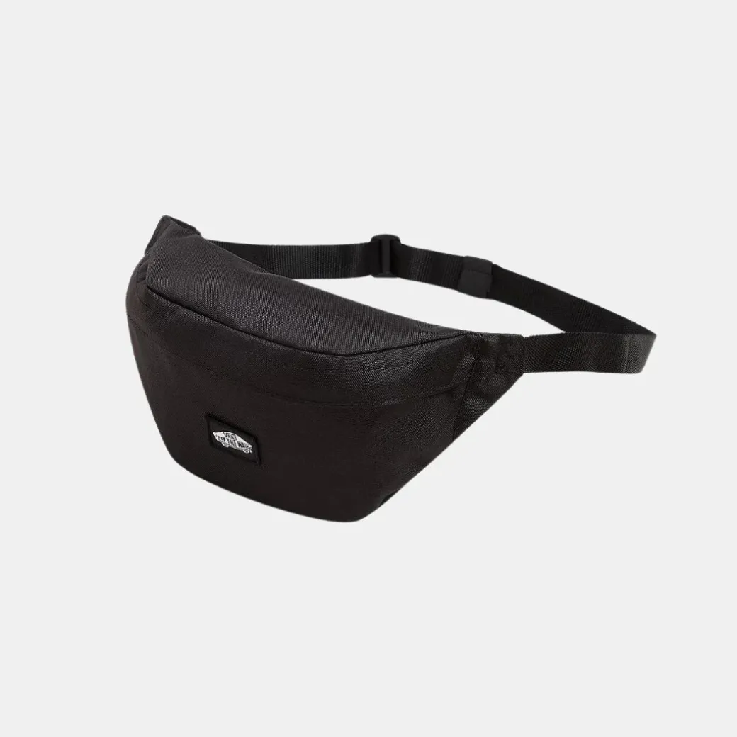 La riñonera Traveller de Vans es un modelo de inspiración retro, dotado de una correa ajustable y decorado con el parche con el inconfundible logotipo en forma de monopatín de la marca en la parte delantera.