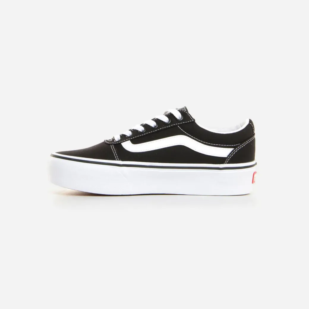 Mejora tu estilo y aumenta tu altura con las Vans Unisex Ward Plataform Black White. La suela plataforma te da una elevación adicional mientras caminas con comodidad gracias a su plantilla acolchada. Diseño clásico en blanco y negro para un look versátil y moderno.