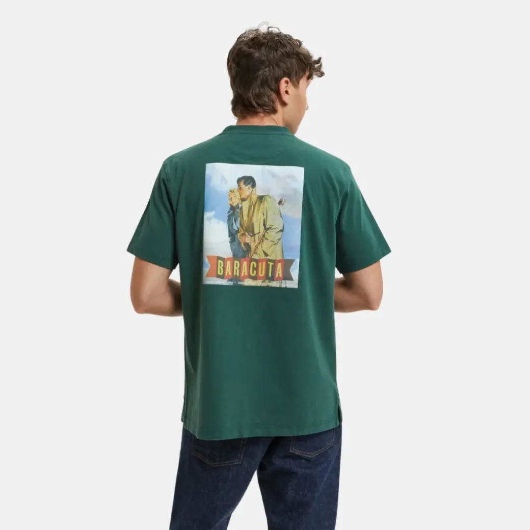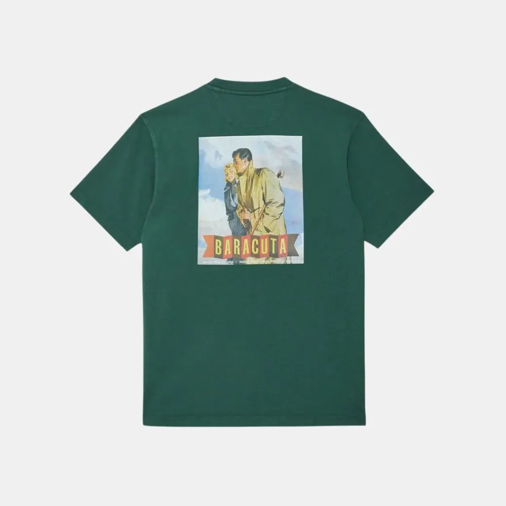 Celebre el legado icónico de Baracuta con esta camiseta, que presenta la clásica frase «Britain’s Best Rainwear» (La mejor ropa impermeable de Gran Bretaña) en el frente y una imagen de un anuncio vintage de Baracuta en la parte posterior. Esta camiseta, que hace un guiño al ascenso de la marca en los años 40 y 50, combina un estilo atemporal con un poco de la historia británica.