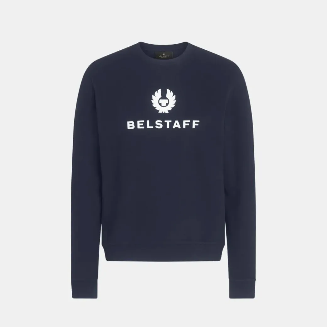 La sudadera con cuello redondo Belstaff Signature en color tinta oscura, confeccionada en un cómodo vellón de algodón, está firmada con un llamativo logotipo. Una prenda cálida y práctica con un toque vistoso.