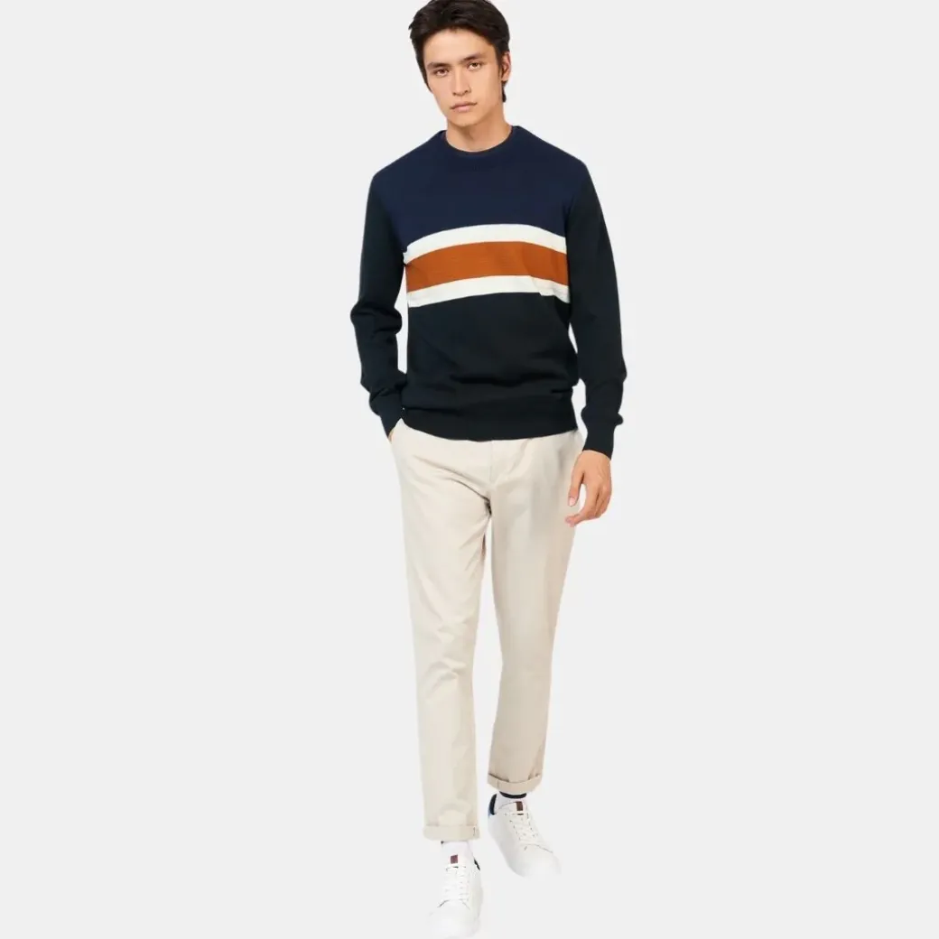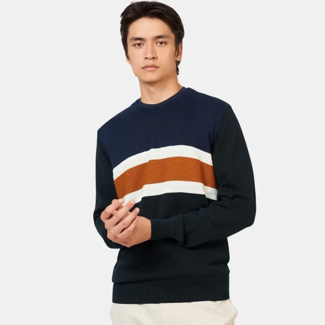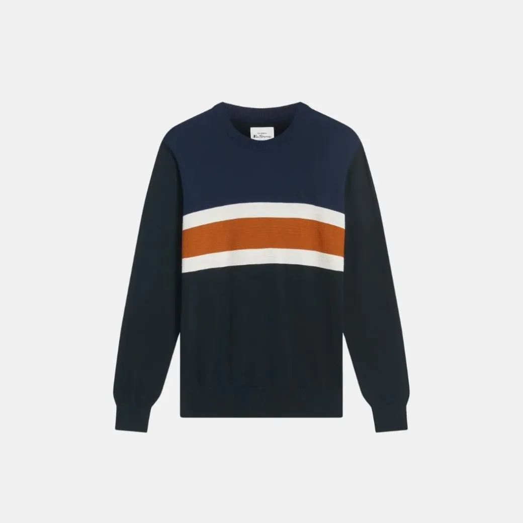 Confeccionado en 100 % algodón, este cuello redondo tejido a rayas en el pecho incluye detalles de canalé en los puños y el dobladillo. Esta camiseta de corte regular también presenta el bordado «Ben Sherman» en el lado izquierdo del pecho.