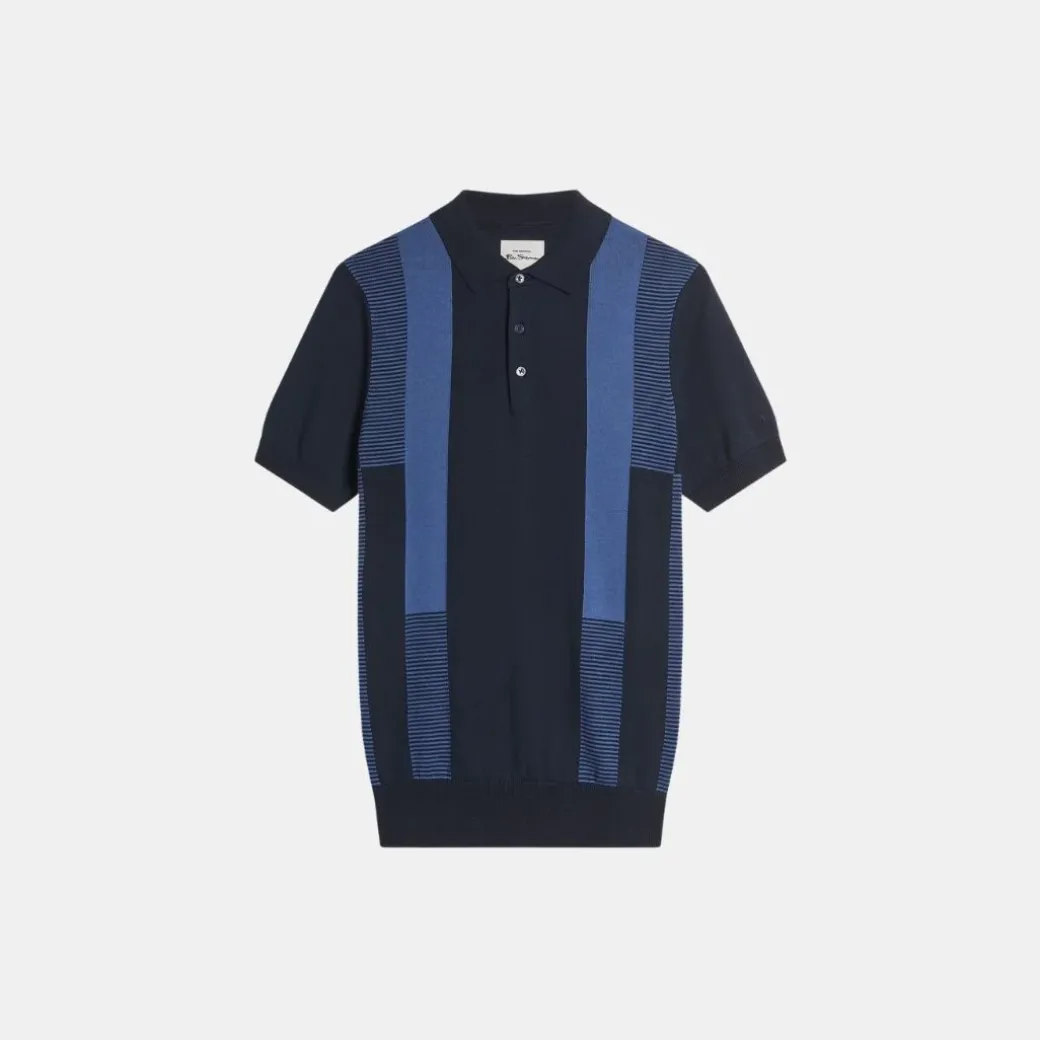 Este polo de punto a rayas presenta un cierre de tres botones y un bordado «Ben Sherman» en la manga izquierda. Un ajuste regular.