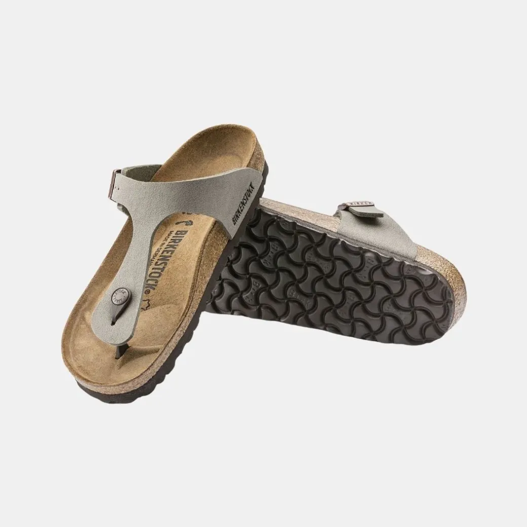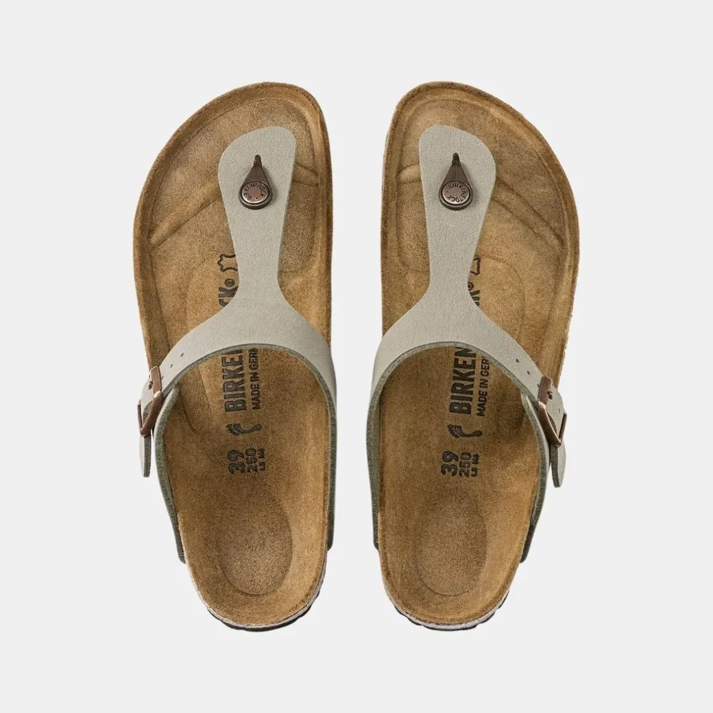 El modelo Gizeh de BIRKENSTOCK es un auténtico clásico y un todoterreno estilístico. Nuestra elegante sandalia de puente aúna una sujeción óptima con una estética minimalista y actual. El material superior está hecho de Birko-Flor®, material sintético resistente y respetuoso con la piel, que se presenta aquí con un elegante aspecto de nubuc casi idéntico a la piel genuina, tanto en textura como en color.