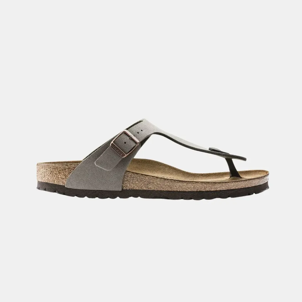 El modelo Gizeh de BIRKENSTOCK es un auténtico clásico y un todoterreno estilístico. Nuestra elegante sandalia de puente aúna una sujeción óptima con una estética minimalista y actual. El material superior está hecho de Birko-Flor®, material sintético resistente y respetuoso con la piel, que se presenta aquí con un elegante aspecto de nubuc casi idéntico a la piel genuina, tanto en textura como en color.