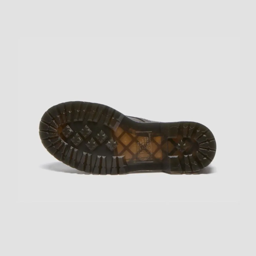 La célebre bota 1460 con piel Virginia blanda, un material con un tacto suave que hace que calzarse una silueta Original Dr. Martens sea aún más fácil. Esta bota cuenta con ojales plateados y cordones planos extra largos. La suela está asegurada con el pespunte amarillo de DM’s y marcada con el característico acanalado.