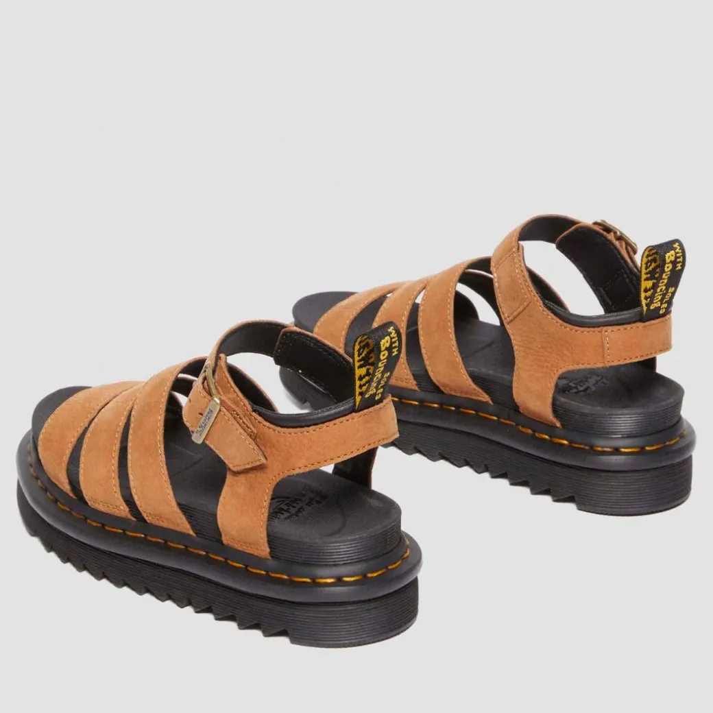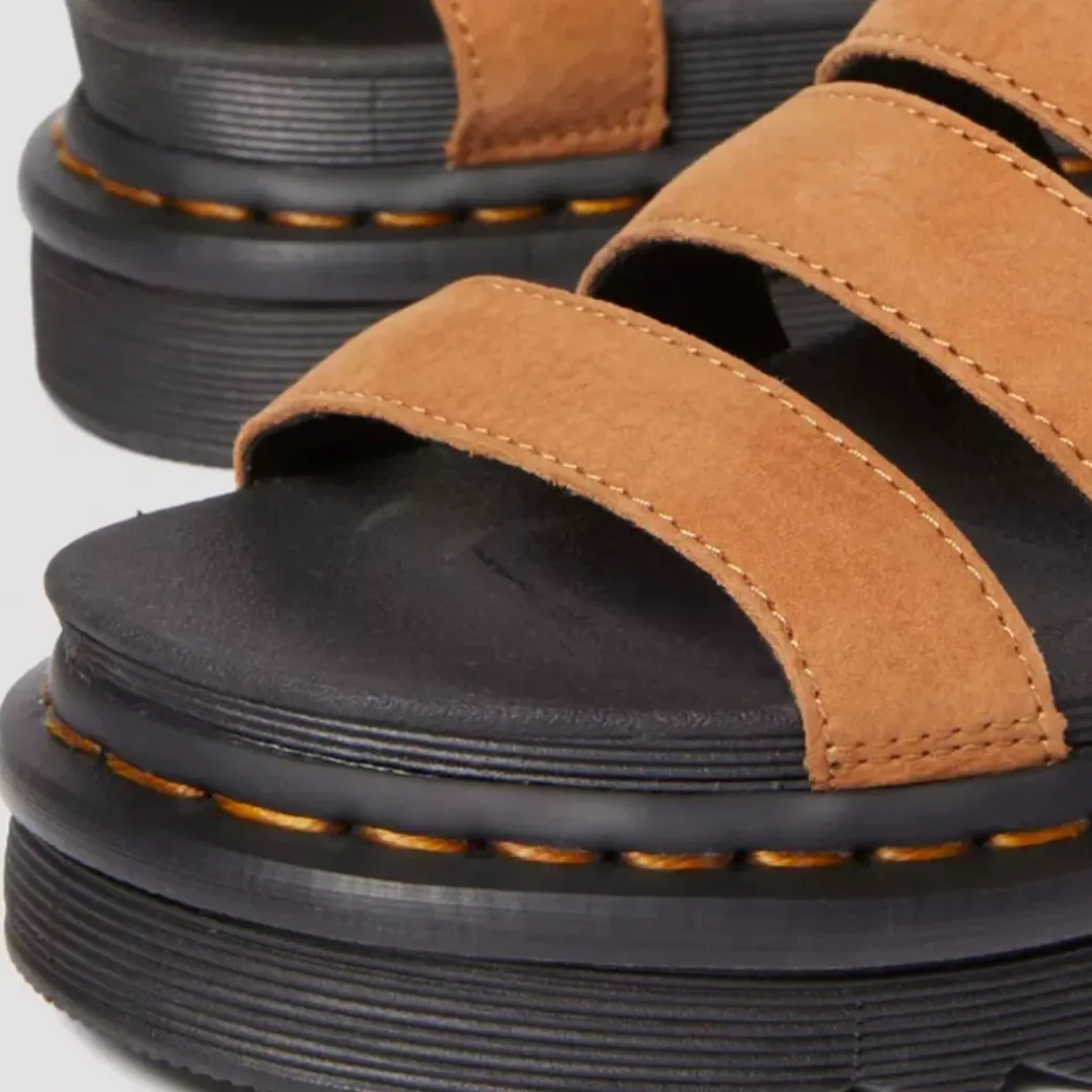 Máximo confort. La sandalia Blaire está fabricada con la resistente piel Athena e incluye una plantilla SoftWair y una plataforma de EVA. La suela presenta un diseño acanalado y está reforzada por el característico pespunte amarillo. Detrás de la correa del tobillo, encontrarás nuestro emblemático tirador de talón AirWair.