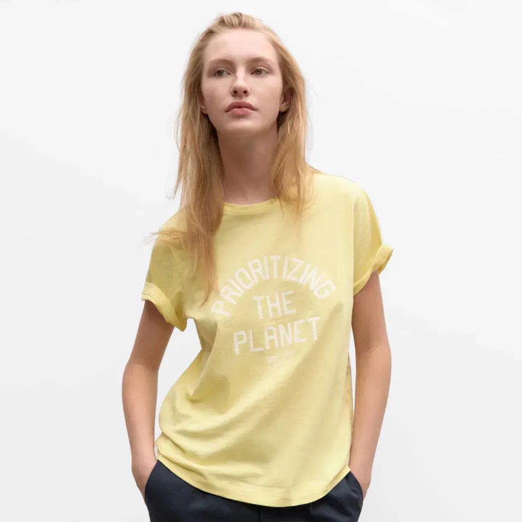 La camiseta Amazonas de manga corta tiene cuello redondo y el mensaje «Prioritizing the Planet» estampado en el pecho. Hecho de mono-material, 100% algodón orgánico. Nuestro Algodón orgánico comparte la misma calidad que el mejor algodón convencional, pero sin el impacto negativo asociado en el medio ambiente. Se cultiva sin el uso de pesticidas, insecticidas o fertilizantes, utilizando buenas prácticas de conservación de suelo y agua. Una camiseta que fomenta la economía circular.