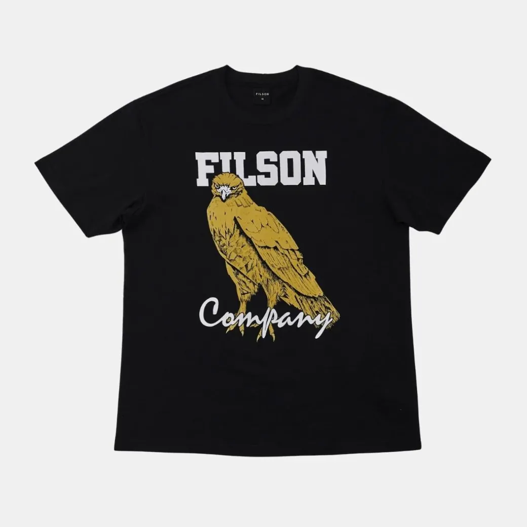La camiseta Pioneer Graphic es una prenda básica, resistente y confiable en cualquier guardarropa, y simplemente no encontrarás una camiseta mejor. Está hecho de 100% algodón: 6,5 oz. Jersey de punto con textura, estructura y tacto seco. El resistente cuello de punto acanalado tiene mucha elasticidad, mantiene su forma y dura años. Los gráficos personalizados se diseñan internamente en Filson y se tiñen con un proceso especial para lograr un color vibrante y duradero. Un básico básico con gráficos que representan al Alaskan Outfitter original.