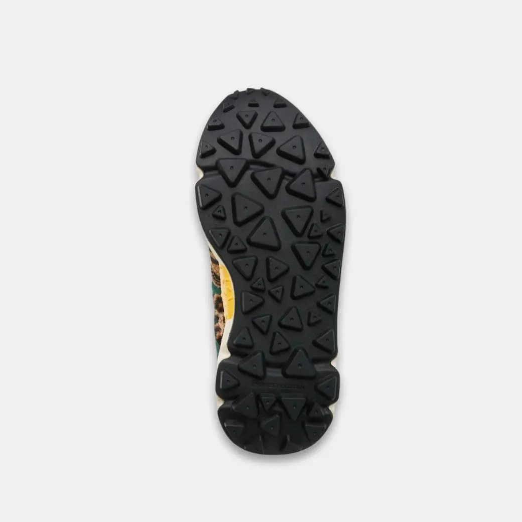 La nueva evolución glamurosa de la zapatilla deportiva: Yamano se propone con un tirante y una puntera en poni animalier. La parte superior en tejido técnico transpirable y ante se completa con un cierre de trekking con cordones y ojales contorneados con la icónica forma de flor. La plantilla de corcho anatómica y antibacteriana garantiza comodidad durante todo el día. Suela de goma ultraligera con dibujo dentado y doble coloración bajo el talón.