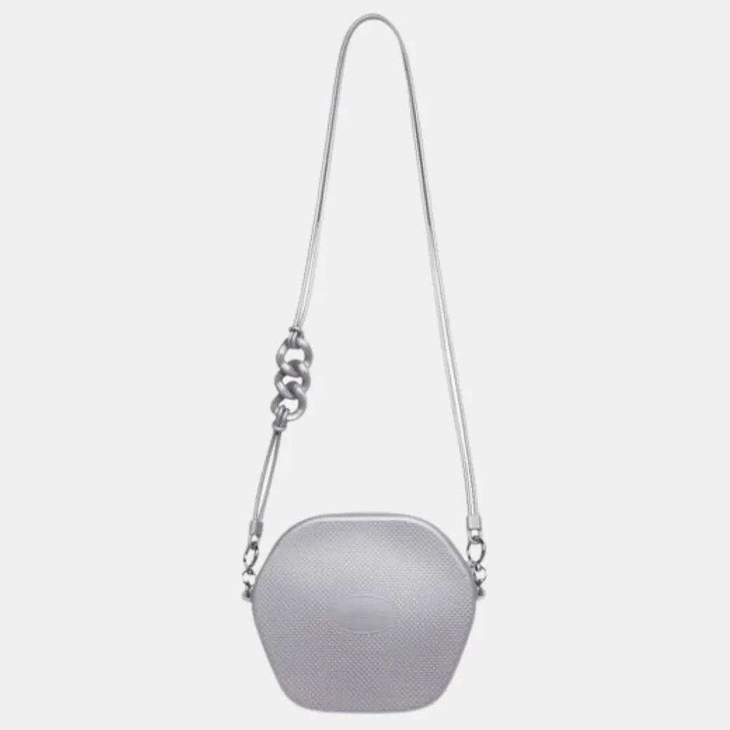 Realza tus salidas con el bolso Diamond de Havaianas, que añade un toque de lujo a tu conjunto. Fabricado 100 % en silicona, este bolso tiene una forma distintiva de diamante y un bolsillo exterior asegurado con un elegante cierre de metal. Llévalo sin esfuerzo como accesorio cruzado o para llevar al hombro, mientras que la correa presenta detalles exquisitos de cadenas de silicona y anillos de metal. Adopta el epítome de la elegancia con el bolso Diamond de Havaianas, donde la sofisticación se combina con la practicidad para una experiencia verdaderamente lujosa.