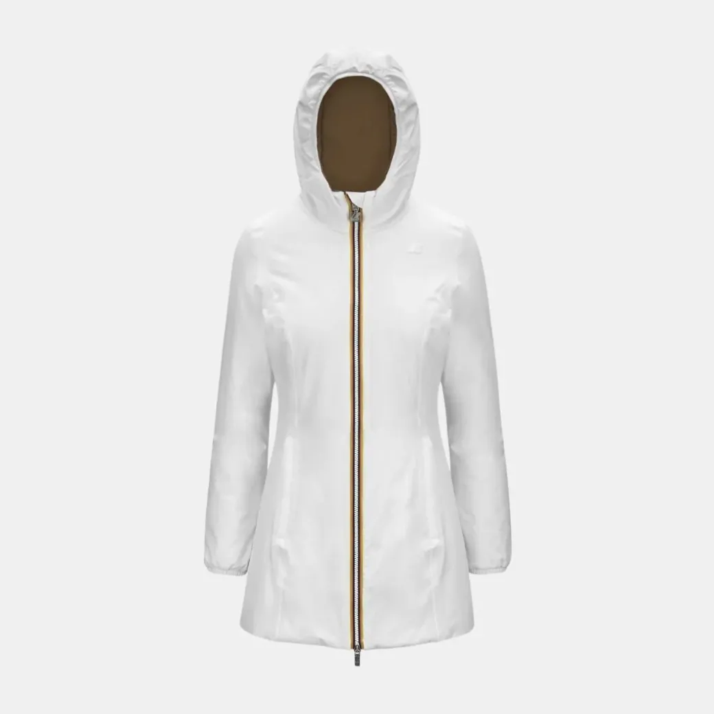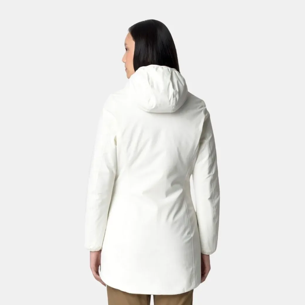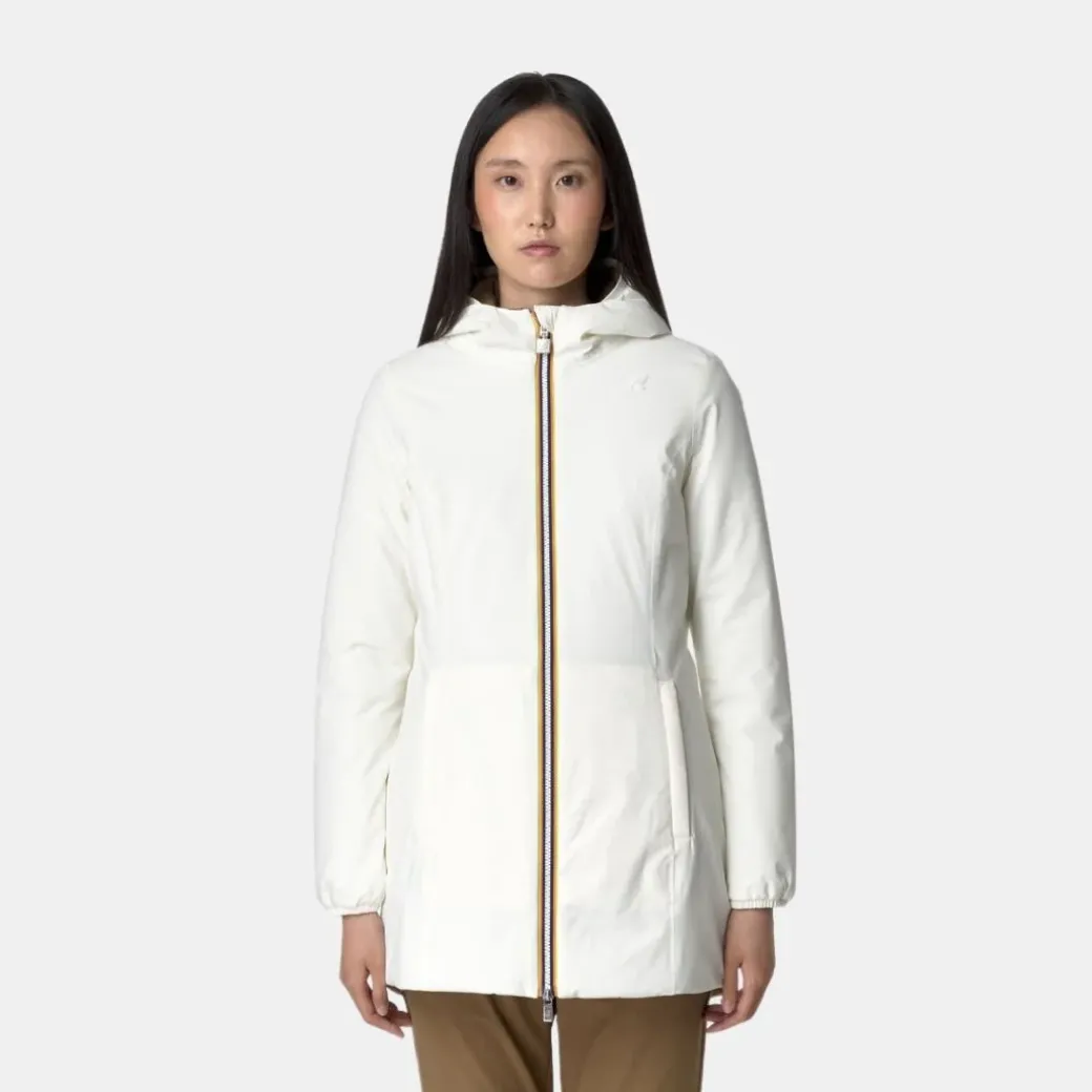 La chaqueta de tres cuartos Denise para mujer reinterpreta el espíritu funcional de K-Way con un toque femenino. El diseño combina un lado liso de poliéster elástico impermeable con un reverso de poliéster resistente al viento estampado. El diseño, que está aislado con relleno sintético para un nivel medio de calidez, perfecto para entretiempo, presenta costuras termoselladas para un aislamiento térmico y una comodidad superior durante las actividades al aire libre.