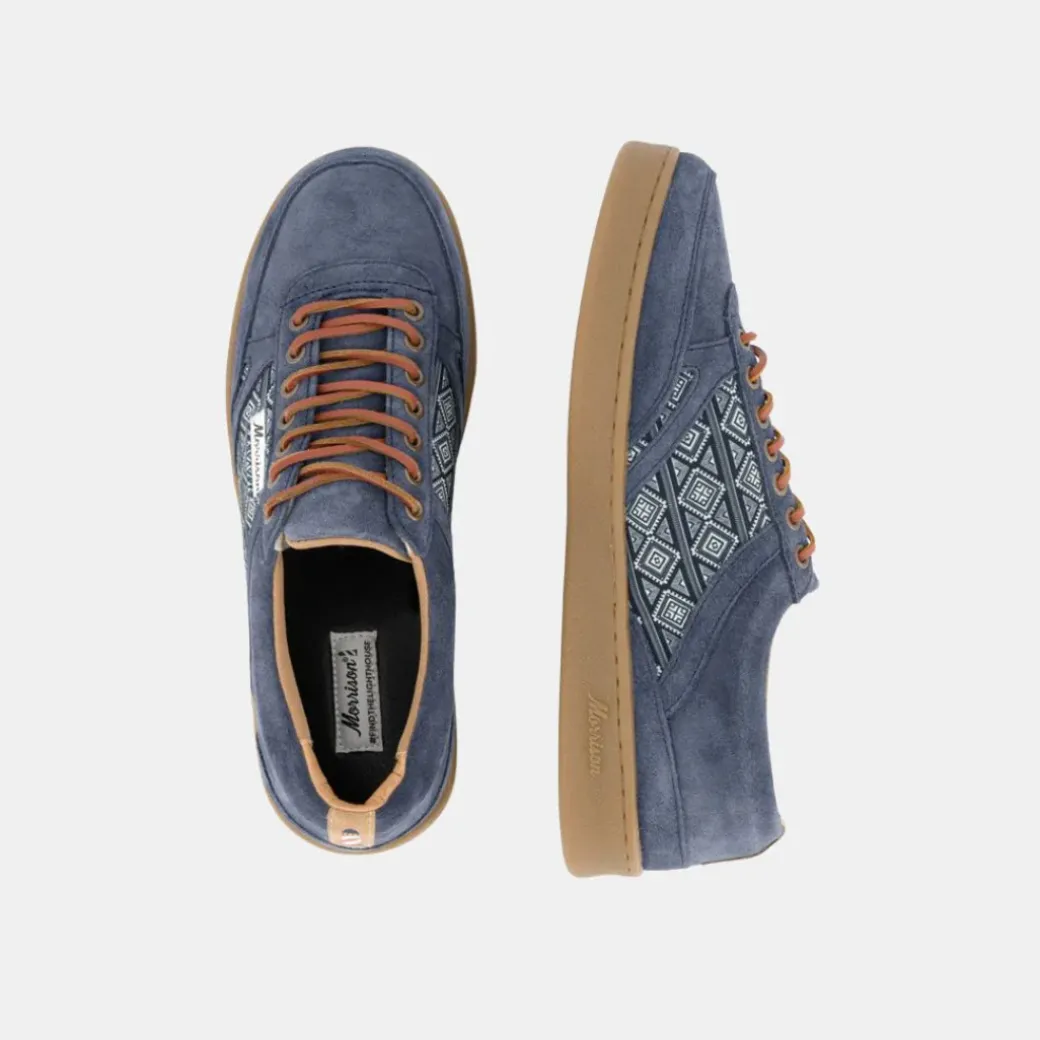 La zapatilla perfecta para tus looks semi-formales. Sigue derrochando elegancia sin renunciar a la comodidad gracias a la Ninteties Shelby. Fabricada en serraje azul, con estampado en piqué y originales cordones en piel bicolor. Suela color caramelo.