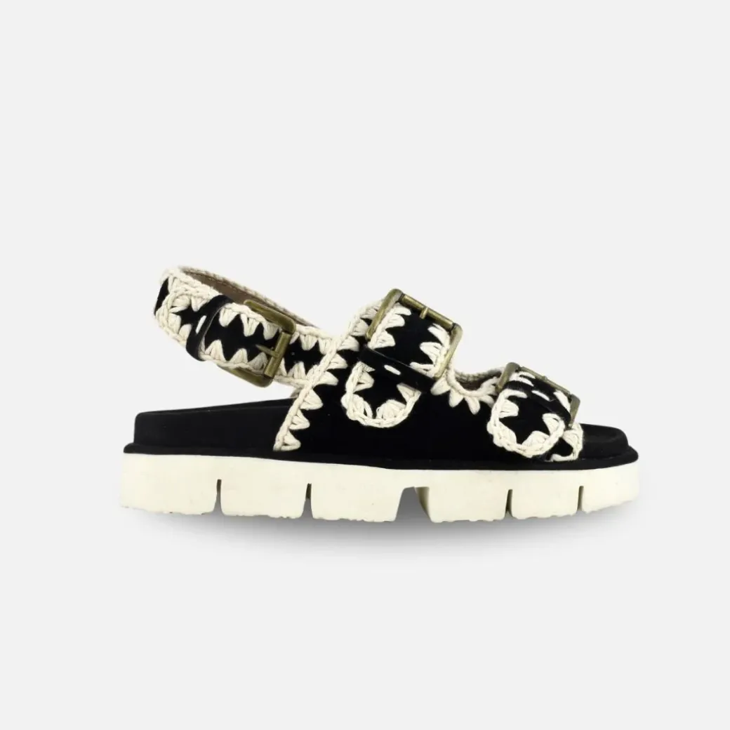 Las nuevas sandalias bio con hebilla ofrecen el look perfecto para un verano relajado y elegante. Completa con dos correas delanteras, una trasera, la característica costura de ganchillo de Mou, una ligera suela exterior de EVA y plantilla de ante para mayor comodidad.