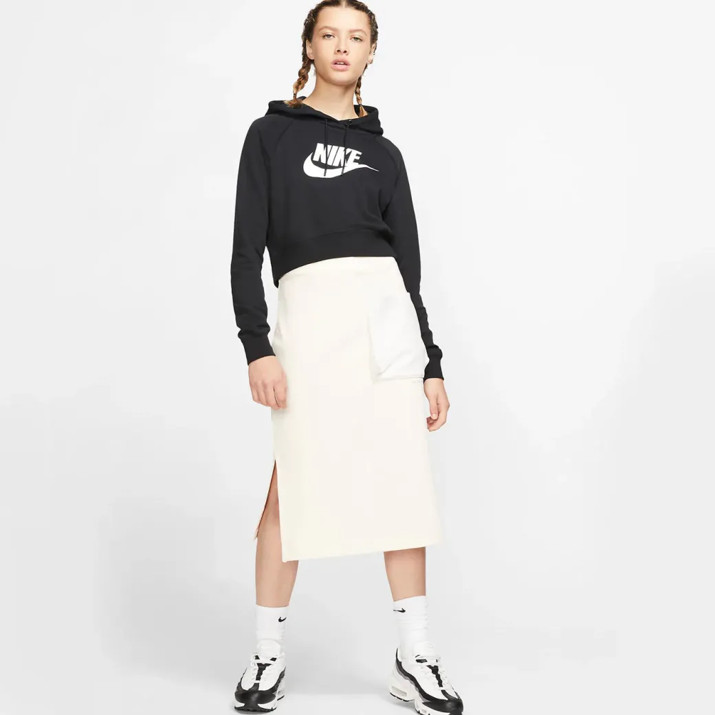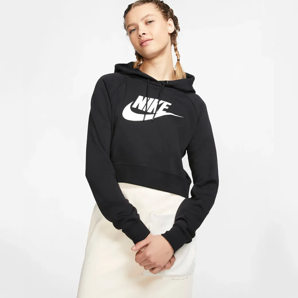 Manténgalo simple con la sudadera corta con capucha Nike Sportswear Essential para mujer. Luciendo un ajuste recortado para una apariencia versátil, cuenta con tela de vellón semicepillado para una sensación ligera y suave.