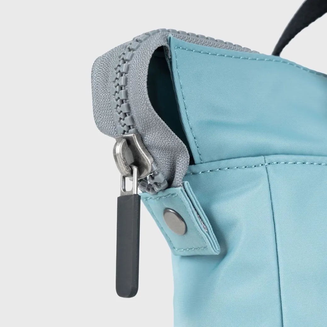 El Bantry viene en opciones de lona reciclada y nailon reciclado. El nailon tiene un aspecto brillante y un tacto suave, y el lienzo tiene un aspecto texturizado y un tacto mate.