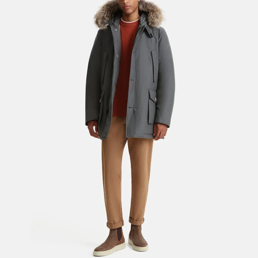 La primera parka ártica de Woolrich se creó en 1972 para proteger a los trabajadores de los oleoductos de Alaska de los duros climas árticos: este diseño de archivo se ha actualizado para las necesidades y la practicidad de hoy en día. Confeccionado con nuestra exclusiva tela Ramar, está reforzado con un innovador revestimiento de teflón para resistir la lluvia y el viento, y también está relleno de plumón de pato con aislamiento natural. Su silueta se realza con un ribete de piel desmontable alrededor de la capucha y una variedad de bolsillos para mantener tus elementos esenciales a mano.
