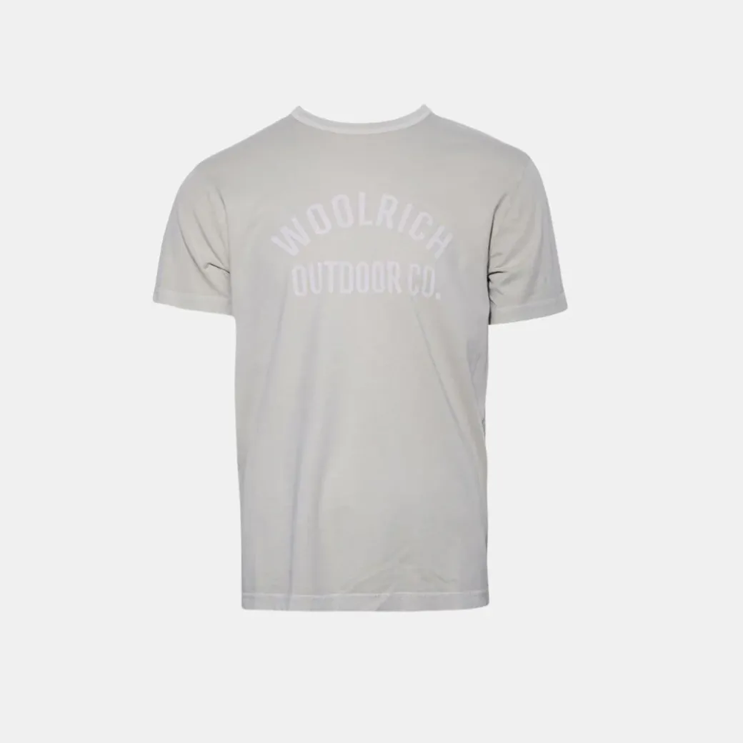 Esta camiseta está confeccionada con un ligero punto de puro algodón y está teñida en prenda para ofrecer un acabado único y un color vivo. Presenta un diseño versátil con cuello redondo, mangas cortas y el logotipo «Woolrich Outdoor Co.» estampado en el frente. El proceso de teñido hace que cada prenda sea única, por lo que el color puede variar respecto a la foto.