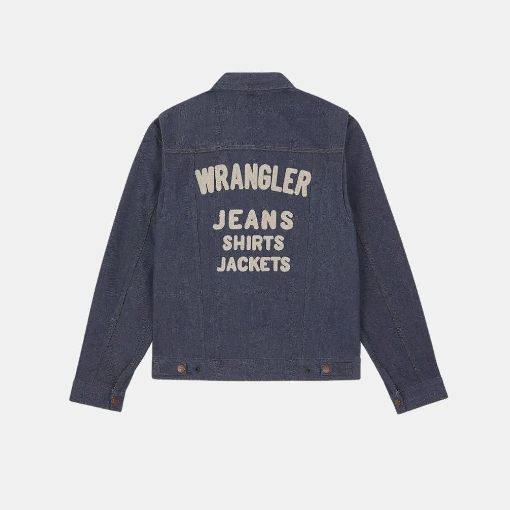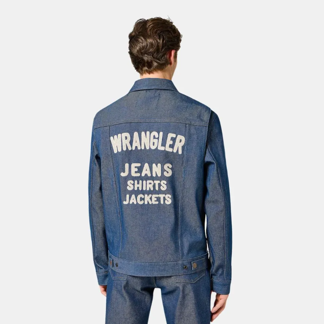 - Gráfico «Wrangler, Jeans, Jackets, Shirts» bordado en la espalda.